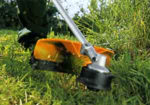 ◆HL-KMヘッジトリマー、FH-KMグランドヘッジャー 広範囲の生け垣をカットするアタッチメント(HL-KM) 小石を飛び散らすことがなく、安全に草を刈るアタッチメント。 公園など人が近くにいる場所での作業に最適です。 写真は、グランドヘッジャー(FH-KM)です。 |